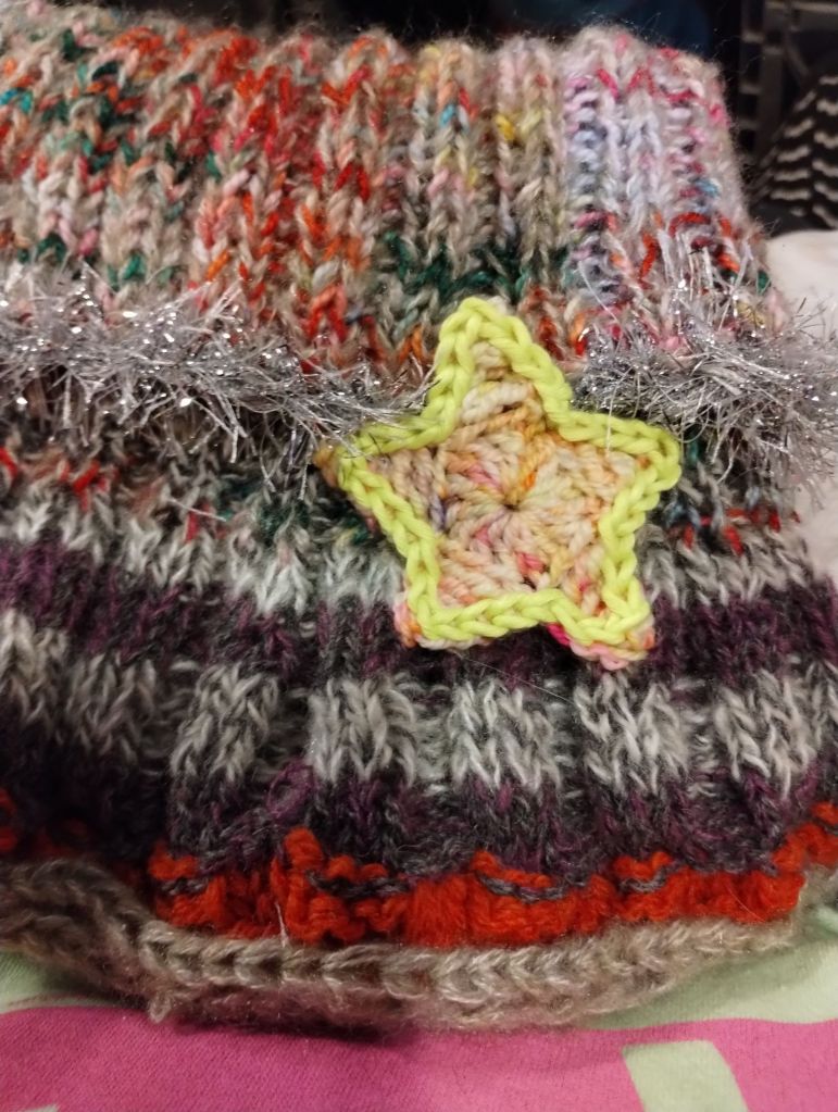In the last few years I made a sweater for Béla and a brioche stitch hat for Tuck. But sometimes between Chiari and ADHD stuff I don’t have the clarity or interest for patterns. That’s when the project with the text comes out.
