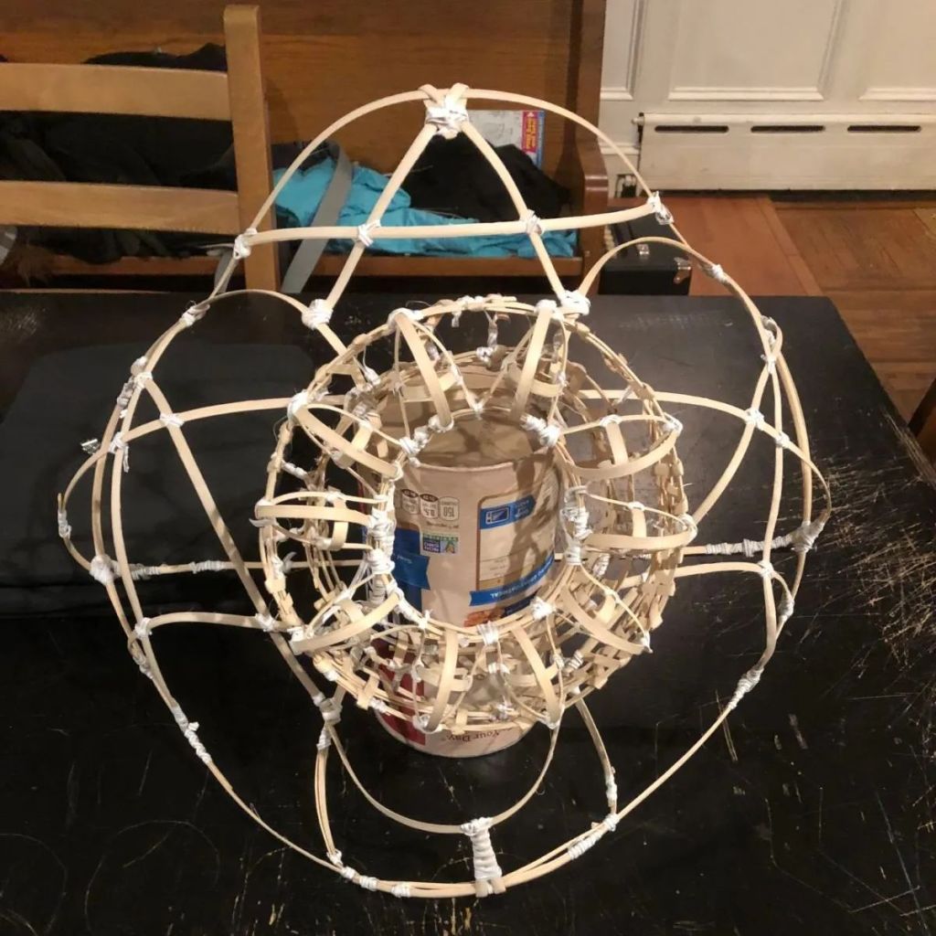 So, so long ago — 2010 maybe? 2011? — I volunteered in a community project at the Fleisher Art Memorial where the Artist in Residence was a woman named George Ferrandi. Her project was a self-described “night parade” called “Wherever There Is Water”. I dyed outfits for my family using kakishibu (fermented persimmon), made a tiny Claudia a tiny tutu out of torn up tulle curtains from IKEA, and battery powered strings of LED fairy lights (now, an absolutely elemental component of any night parade.) I also spun the yarn and knit an enormous Faroese shawl for a parade float figure of an old woman. In a photo e-mailed to me by another parade participant, I was in view with the giant old woman and her curved, shawled back. Next to me was another figure; Tucker’s brother, months or a year before Tuck and I had even met.