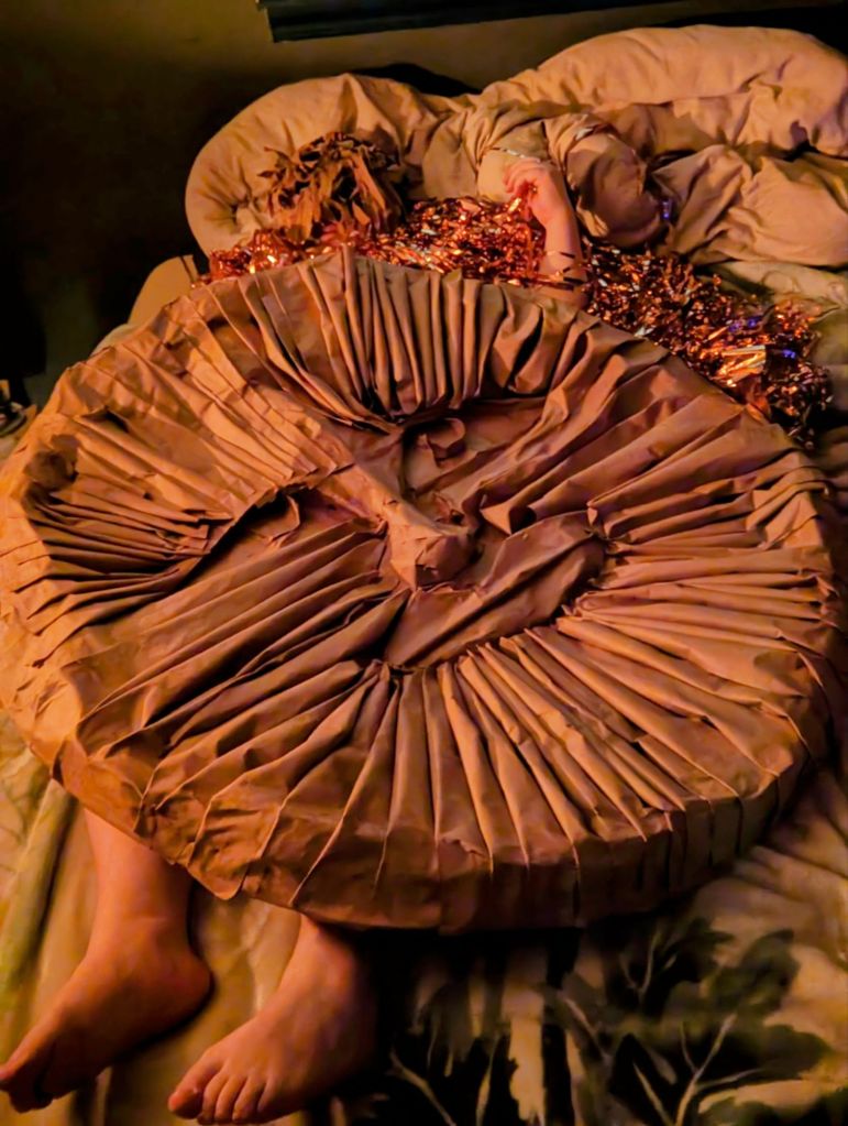 Tucker’s Big Sun was begun as a costume/prop for my Hedge Morris debut of dancing up the sun for May Day, but on that particular dawn I was in a serious flare-up. So no dancing, but instead photos of me naked and tangled in a bed of mylar ribbons, the sun crushing me. And, Tuck’s beautiful video (which to me has a soundtrack of Paul Weller’s “Rise Up Singing”).