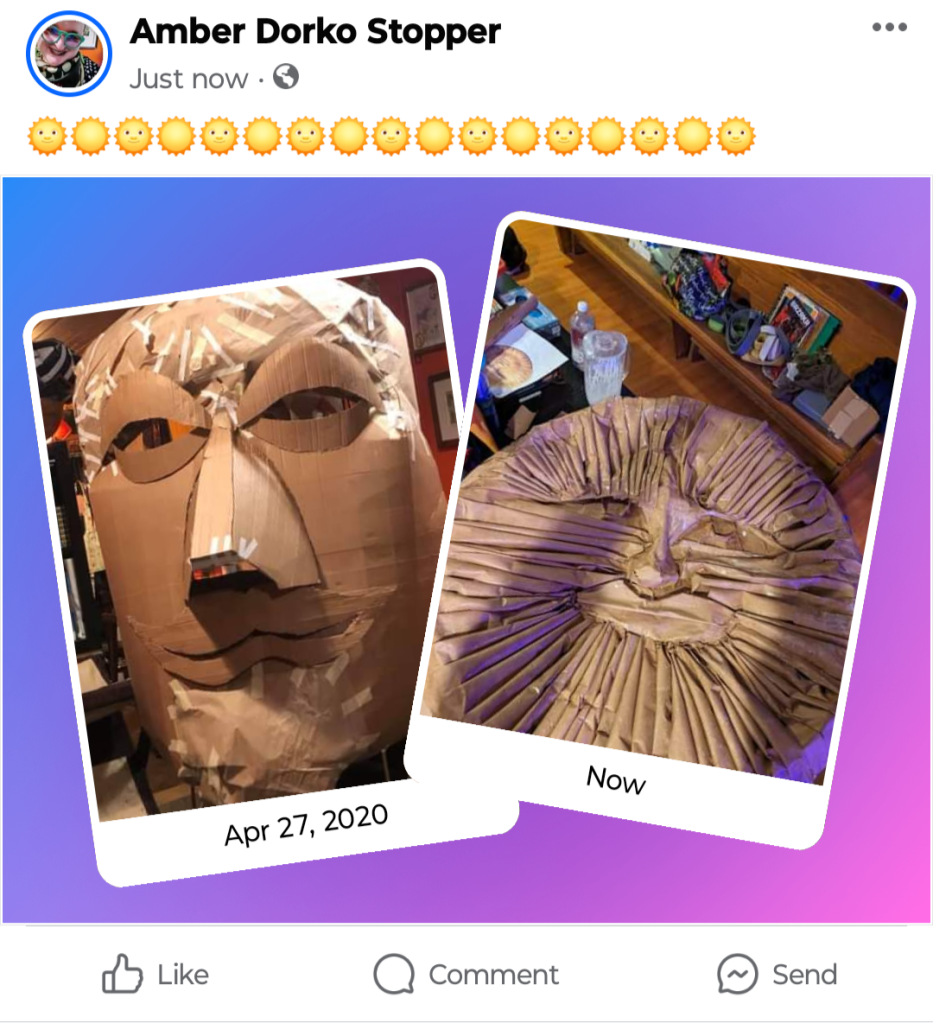 Before Covid, we were able to participate in public events and street fairs through puppetry. For me, the most meaningful event was teaching children how to make shadow puppets at a street fair. Before the event, I had to learn how to make shadow puppets, which I did by learning from and interacting with other people in the group. It was enjoyable to get out of my comfort zone and my own house in order to meet with other people on a regular basis. I had intended to produce a full-length shadow puppet show based on a story I had written, and had started creating the puppets based on my original character drawings. It was supposed to be performed in May 2020, but unfortunately Covid got in the way.