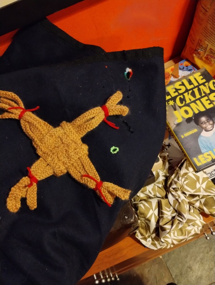 And then, I knit a St. Brigid’s cross. Took much longer than I thought, and this yarn fuzzed up quite a bit, but I’m still pleased.