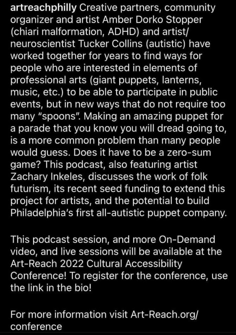 How apropos that the idea of sticking with “Jell-o” deadlines can be so helpful to neurodivergent and disabled creatives. It took us SIX tries to get together to record this — all due to pain on my part. We were thrilled to hear that this was the most listened-to podcast at art-reach‘s cultural accessibility conference.