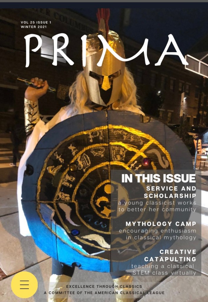 The last few Halloweens have been unusual ones. 2020 was the year when no one was outside at all, except a few friends who came and stood six feet away from our kids. No one went trick-or-treating, but played Dungeons and Dragons on Zoom with friends. But they made costumes anyway. Claudia (as Achilles), ended up on the cover of “Exellence Through Classics” magazine: